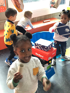 We kleurden een doos helemaal vol en kropen er lekker in!